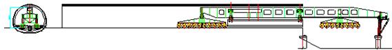 ① 打開主支腿定扭矩馬達,當反饋信息表明馬達工作正常時,啟動后車,以每分鐘不超過2.5米的速度前行過孔。同時觀察主支腿水平力監(jiān)測顯示是否正常(此時上鋼銷顯示數(shù)據(jù)大致在80kN左右,對鋼銷受力數(shù)值的控制是:上鋼銷150kN報警,170kN斷電;下鋼銷570kN報警,650kN斷電),如發(fā)現(xiàn)主支腿水平力數(shù)值異常,須檢查故障原因,排除后方可繼續(xù)過孔作業(yè)。當輔助支腿已上到前方橋墩時,以慢速使輔助支腿就位。
